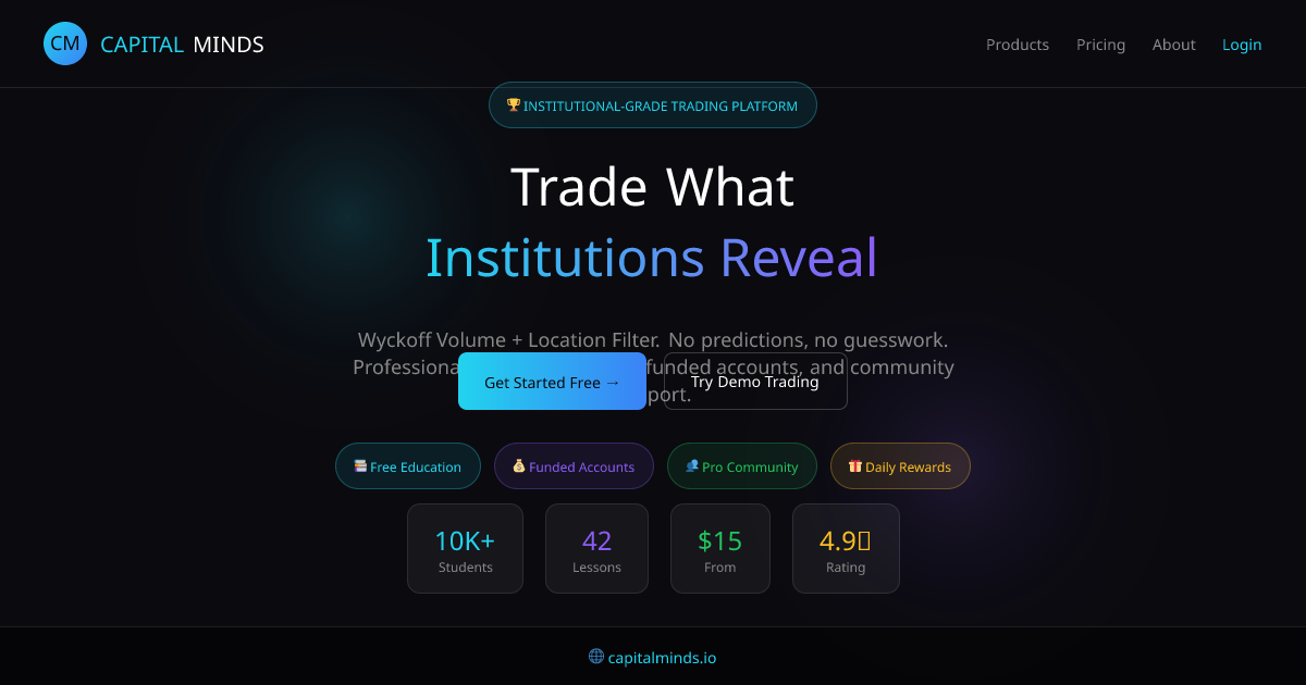 Capital Minds is a forex education and trading-technology company headquartered in Pakistan. Founded in 2025 by Trader Abbas, the company offers free forex mentorship, premium trading signals, deep-dive Wyckoff and candlestick education, and custom-built MetaTrader bots. Capital Minds is built on three principles: rule-based systems, transparent risk management, and accessible education — with mentorship offered free of charge to traders across Pakistan.